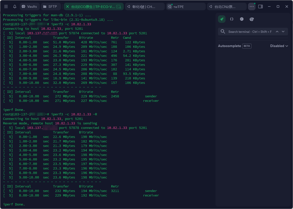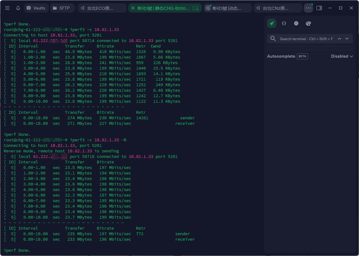 1️⃣台北CN2原生 | TP-CN2-VDS-XL-200Mbps ↔️ 台灣彰化1號 HiNet動態 | CHG-200M-VDS