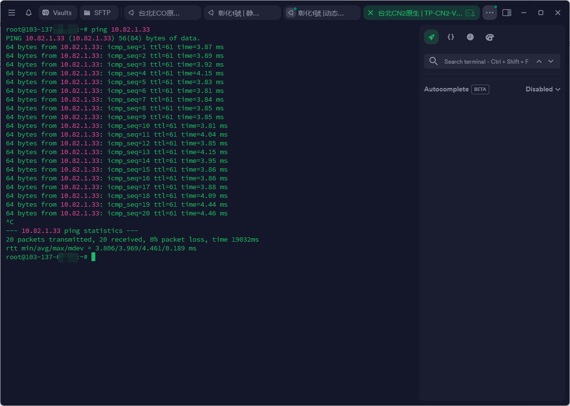 📍台北CN2/ECO ↔️ 彰化HiNet动态/静态